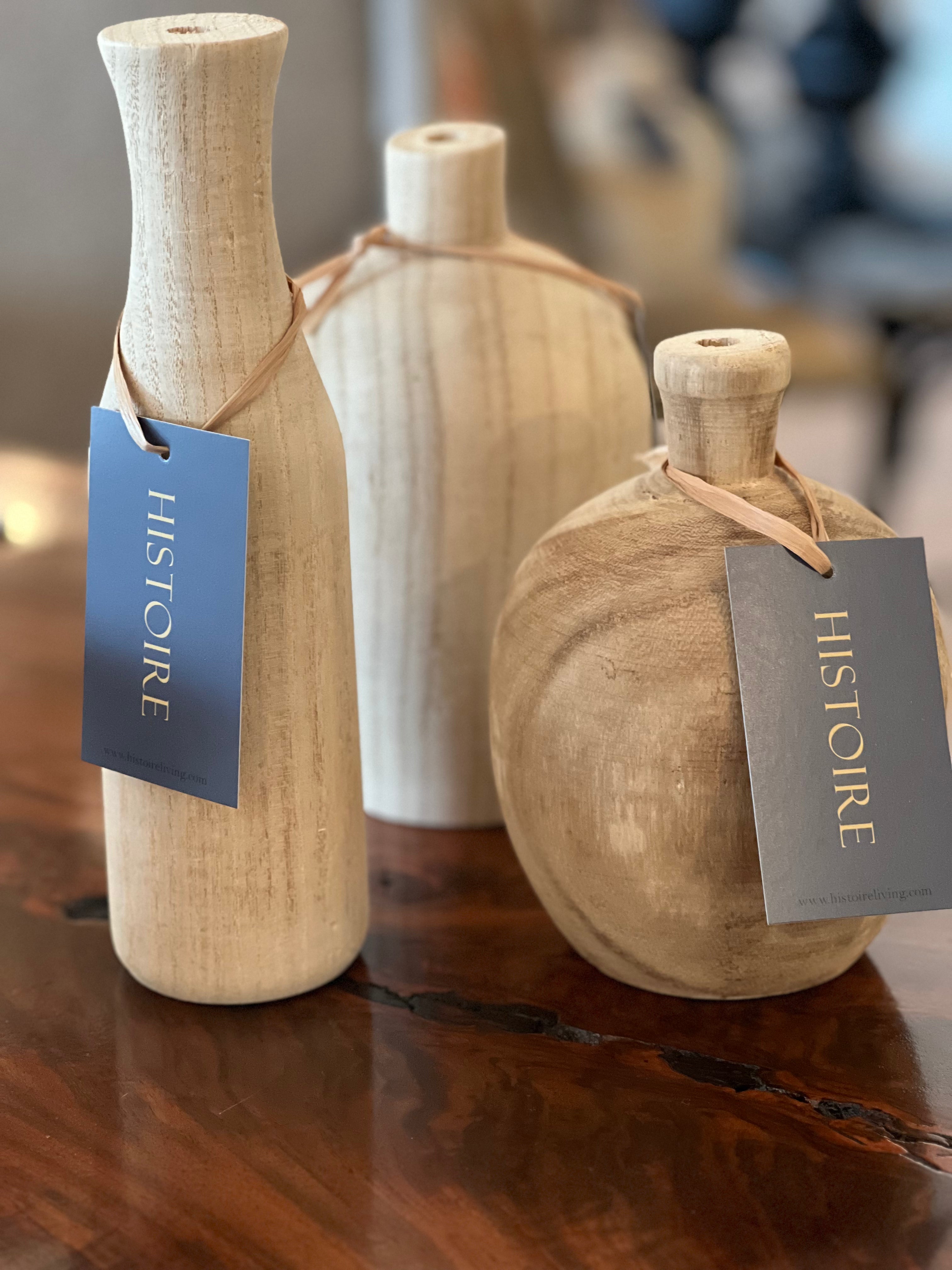 Vase- Wood Carved SML Bottle