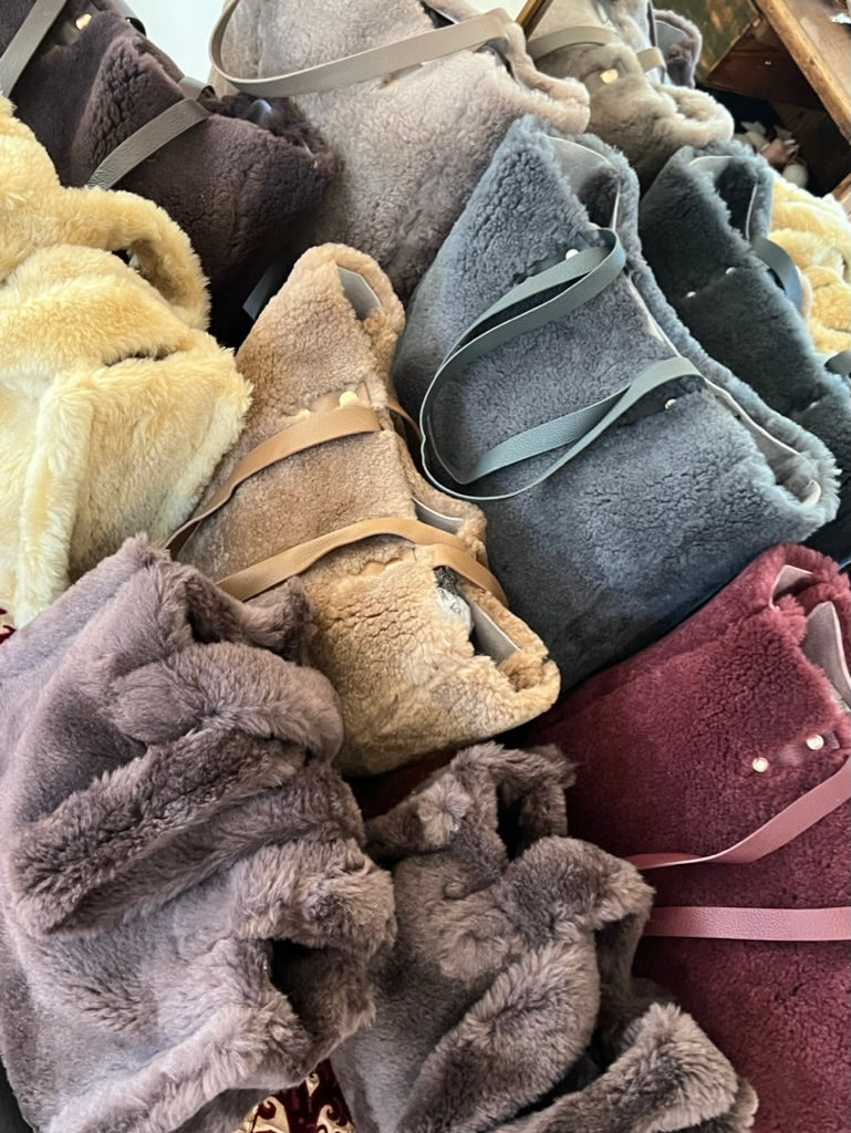 The shopping bag is made from the finest genuine sheepskin available. As a result, it has an unparalleled softness and is highly durable. Each bag is carefully crafted to ensure it lasts for a long time. With its natural charm and elegance, the bag will age beautifully over time. With its generous dimensions, the Aya bag offers plenty of space for groceries, books, clothes, and anything else you might need for the day.