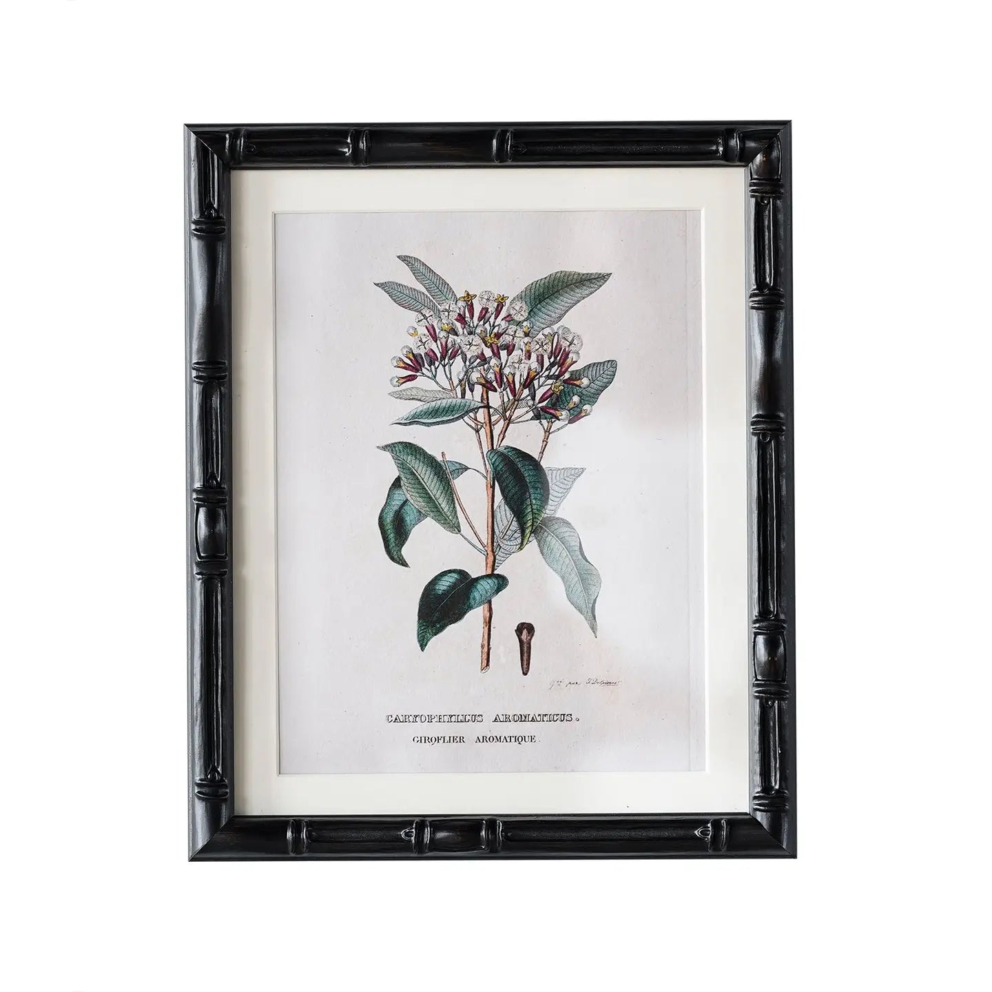 The thin, faux-bamboo wood Castleford Matted Frames are dressed in a distressed-black finish that adds an historic charm. Each frame includes a vintage, art-paper print of colorful botanical studies. Both sides of the plexiglass are protected by two, peelable layers of film.